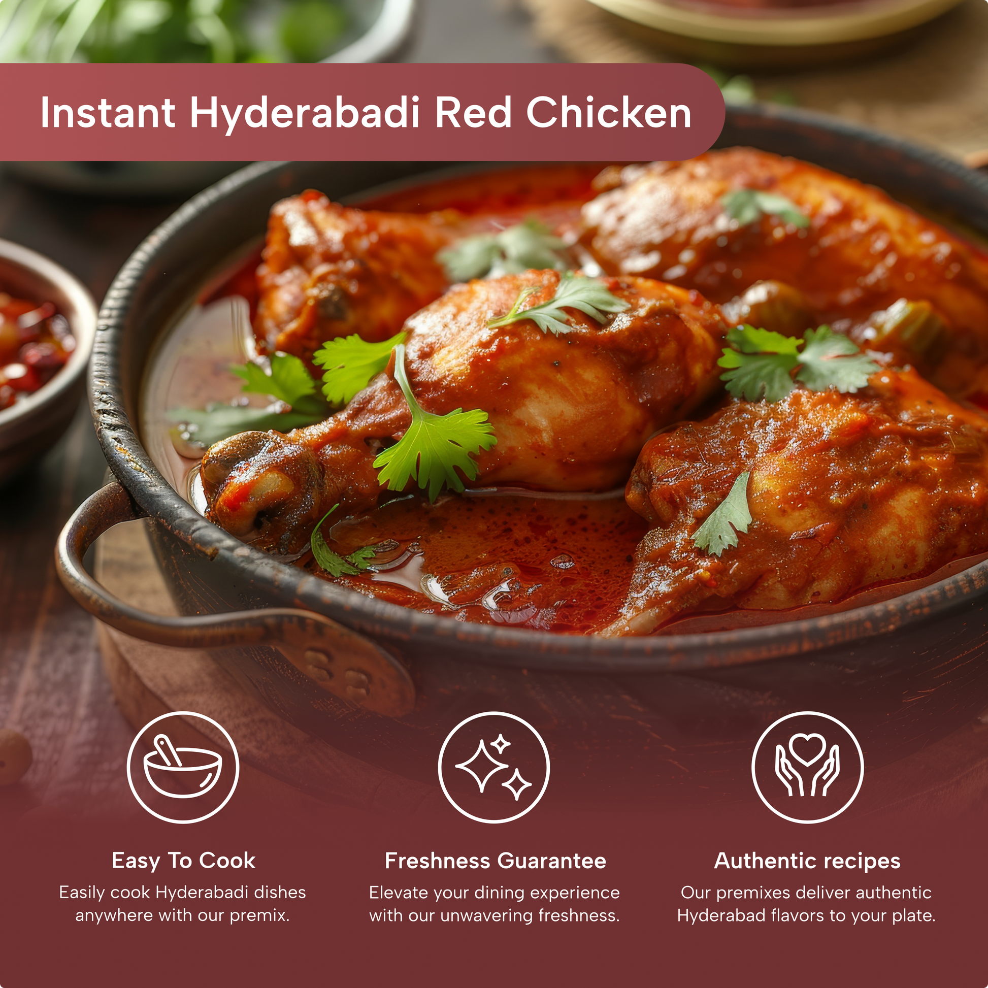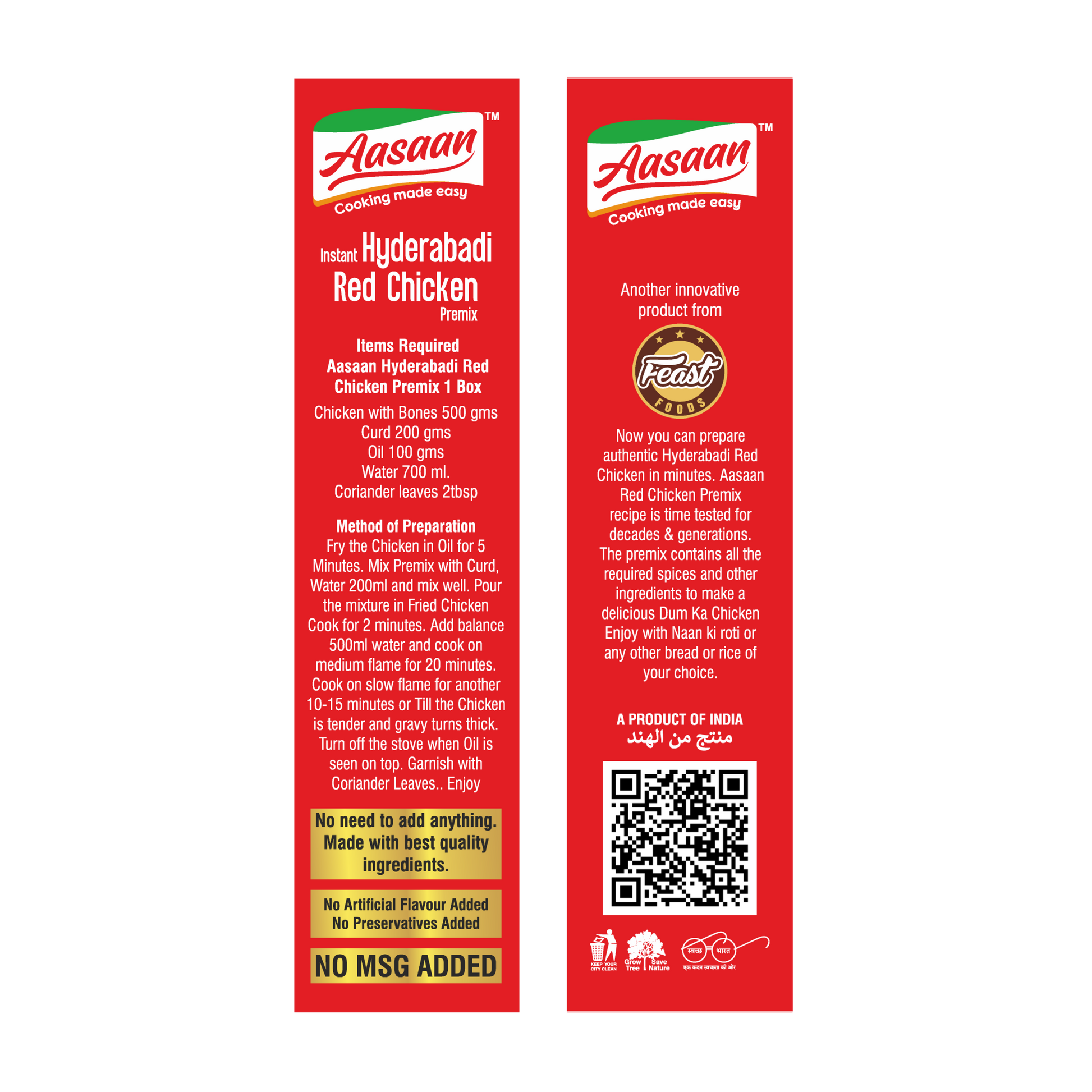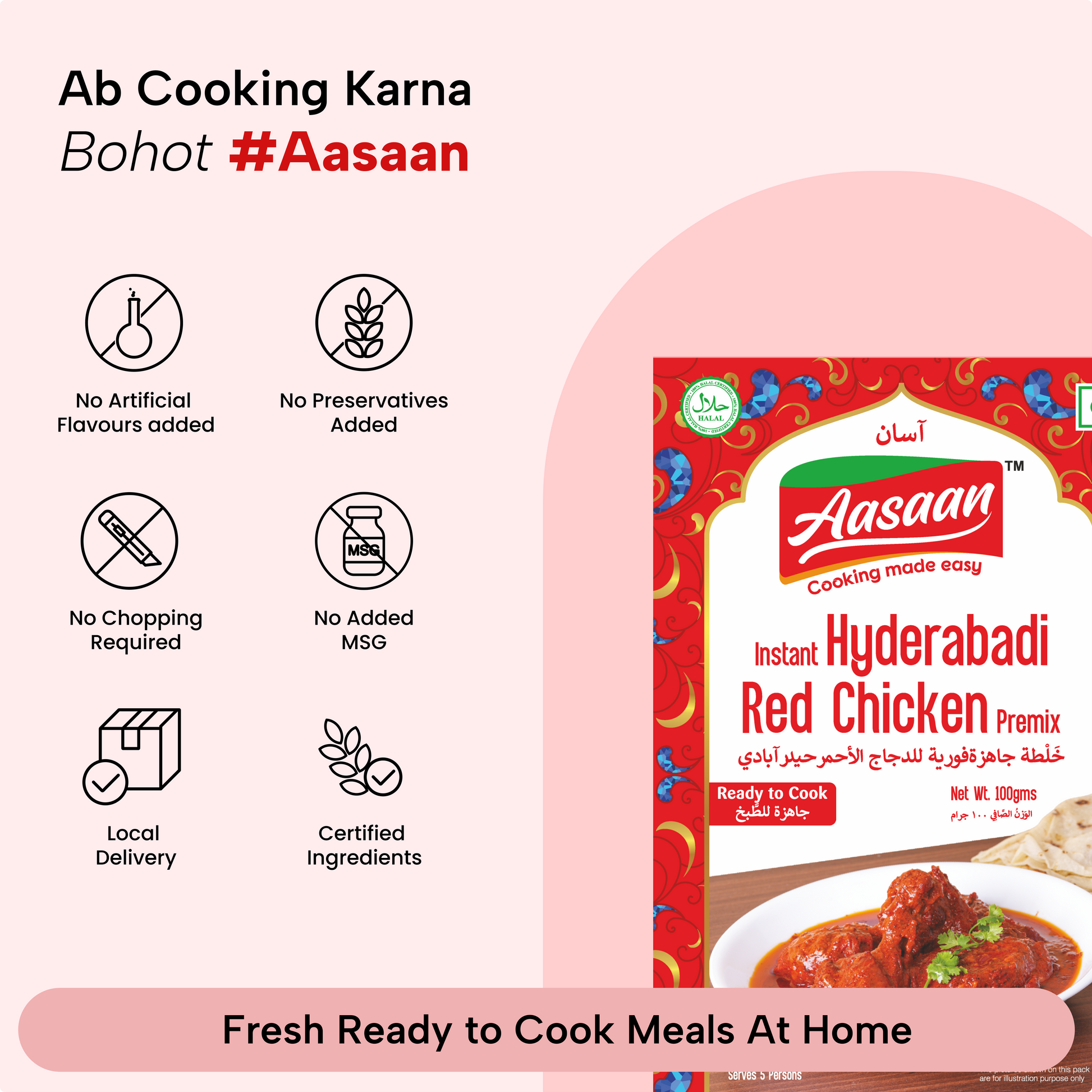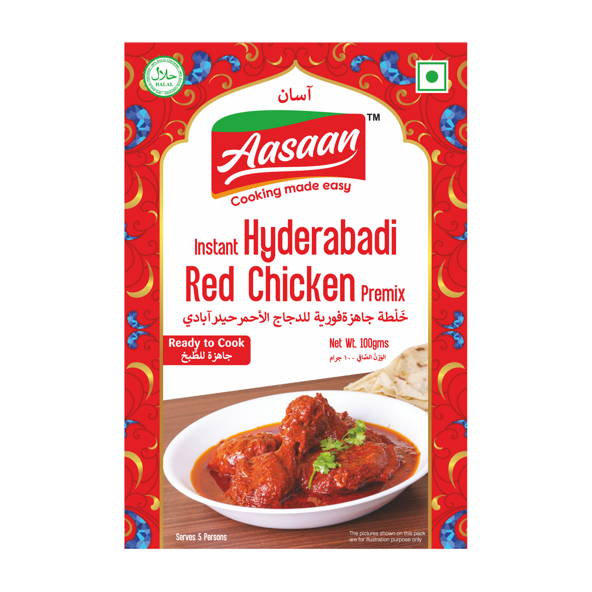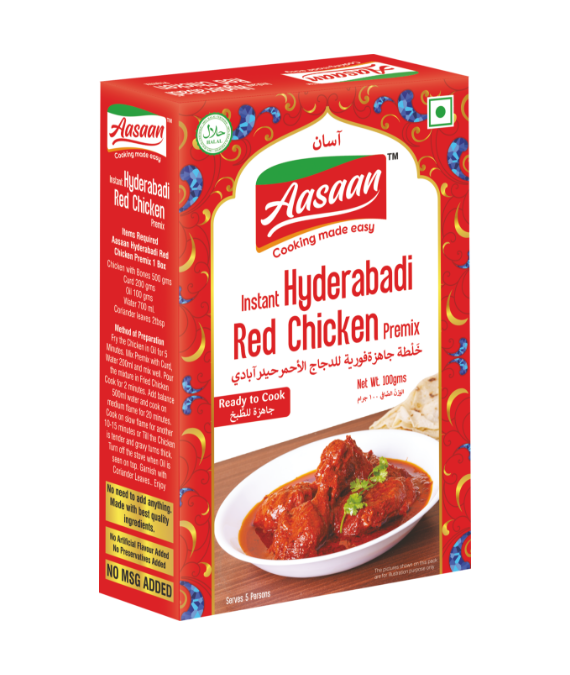 Now you can prepare authentic Hyderabadi Red Chicken in minutes. Aasaan Red Chicken Premix recipe is time tested for decades & generations. The premix contains all the required spices and other ingredients to make a delicious Red Chicken. Enjoy with Naan ki roti or any other bread or rice of your choice.